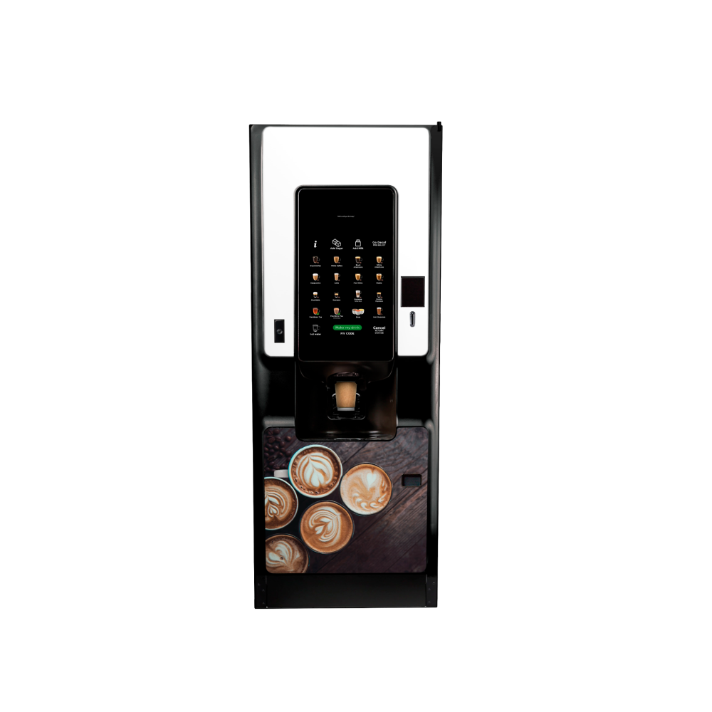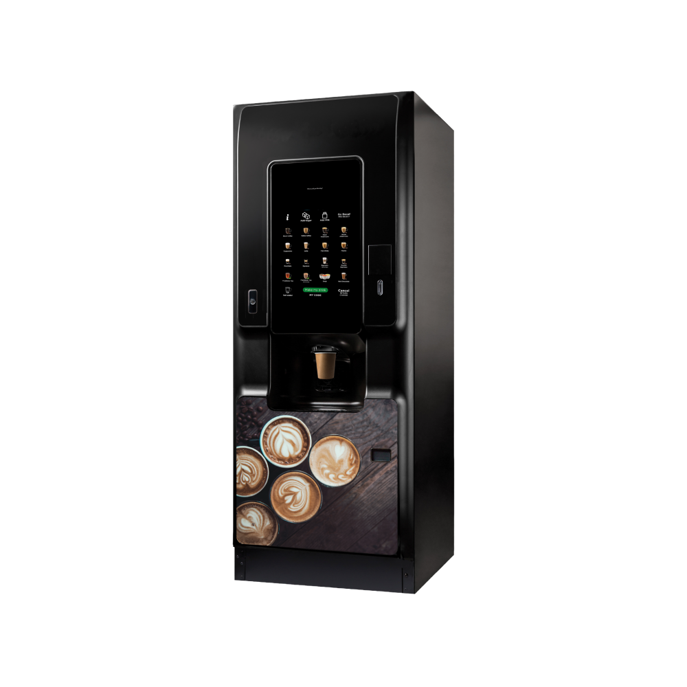 The CALI™ coffee vending machine is built on Crane’s trusted coffee platform, delivering barista-quality beverages with a sleek, durable design. Ideal for B&I, high-traffic locations, CALI offers fresh bean to cup, fresh brew and instant coffee as well as soup, chocolate and fresh leaf tea drinks through a modern touch interface. With intuitive controls and customizable branding, CALI combines style, reliability, and performance in one compact automated coffee solution.