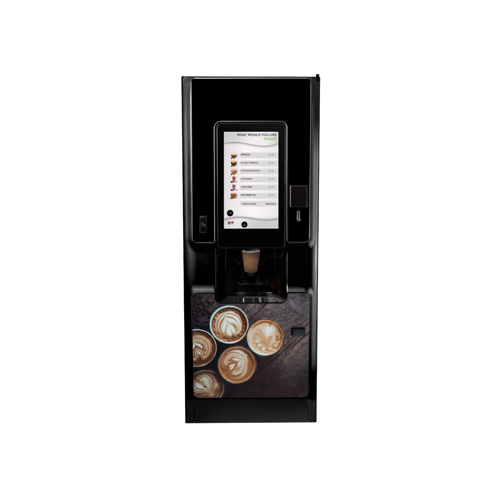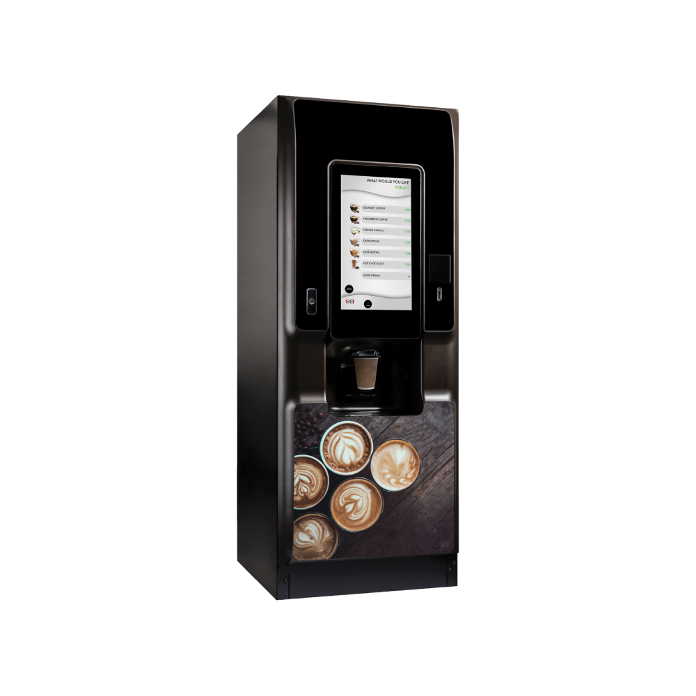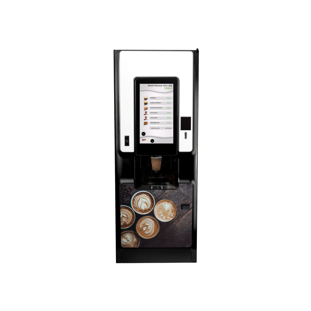 The COTI machine delivers a premium, modern and fast coffee experience in a sleek format. COTI features a vibrant 21-inch touchscreen and a broad drinks menu from bean to cup selections to freshly brewed tea and chocolate with many personalization options. With reduced maintenance time and seamless integration across Crane systems, it’s the ideal solution for offices, public spaces, and hospitality environments seeking barista-style coffee at the touch of a button.